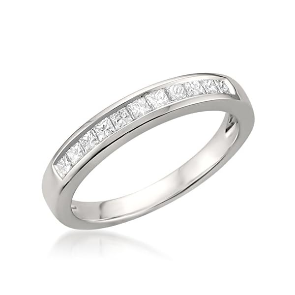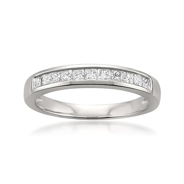 That odd woman deserves a superb ring, and whether you’re celebrating the start of your fairytale or your happily ever after, this 1/4 cttw diamond wedding band is the very best accessory. A stunning 11 Princess-cut diamonds are channel set on a gleaming platinum band. Moreover, we guarantee our diamonds are conflict-free and in response to the Kimberley Process Certification System, a UN-backed practice that certifies that origins of our diamonds are from sources freed from conflict and bought through friendly mining.