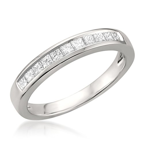 Platinum Princess-Cut Diamond Bridal Wedding Band Ring (1/2 cttw, H-I, VS2-SI1) | Real Diamond Rings for Women | Gift Box Included