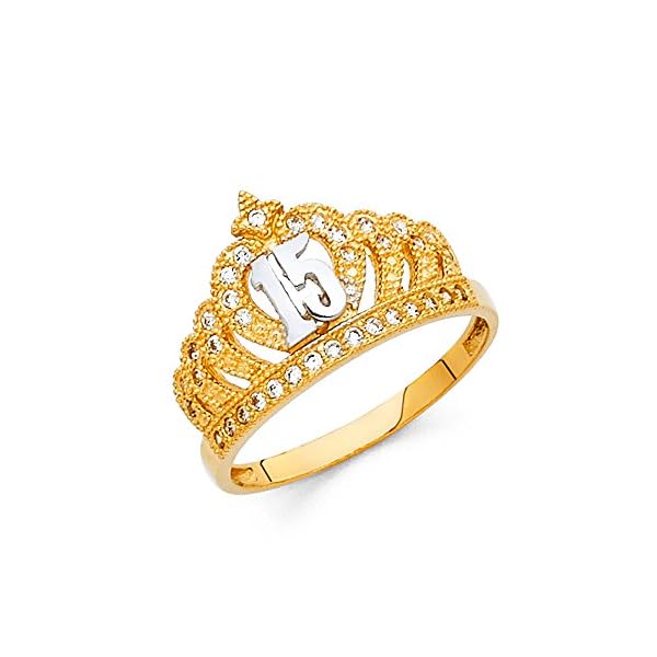 Paradise Jewelers Quinceanera 14K Solid Yellow Gold Crown Cubic Zirconia Ring