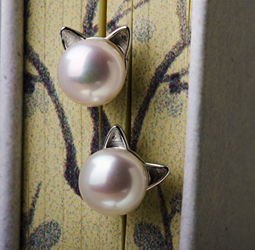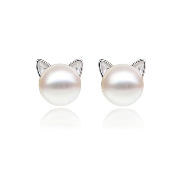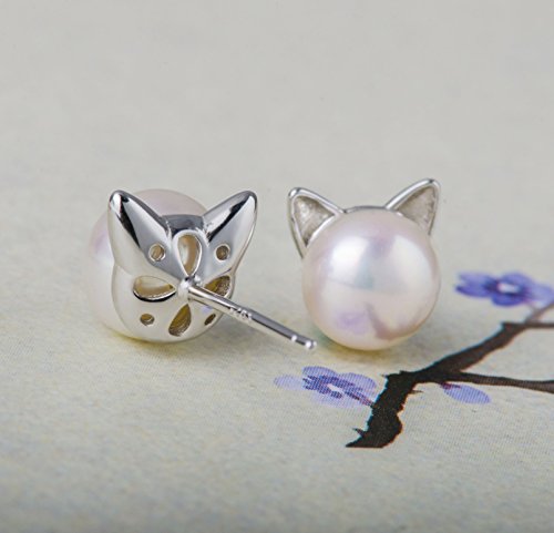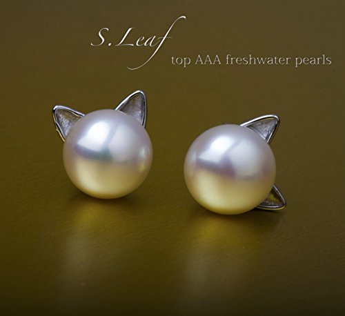 S.Leaf Cat Earrings Pearl Earrings Sterling Silver Earrings for Women Cat Memorial Gifts Cat Gifts for Cat Lovers