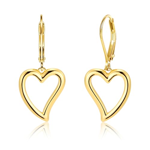 Sterling Silver Heart Earrings for Women 14K Gold Plated Openwork Love Heart Dangle Earrings Drop Hypoallergenic Leverback Huggie Hoop Earing for Women Trendy