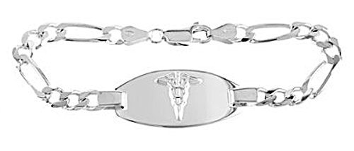 LGU Sterling Silver Medical Alert Identification Figaro Chain Engravable Bracelet
