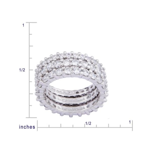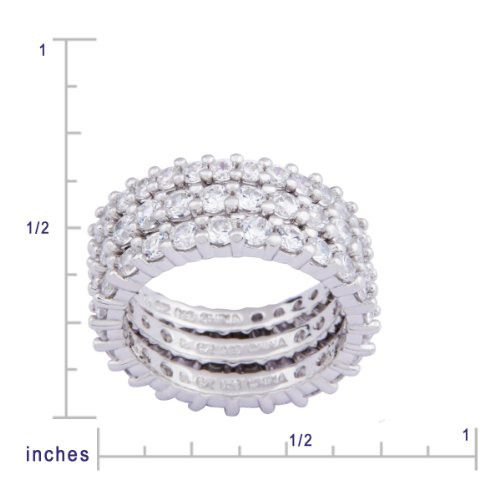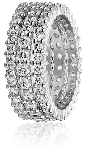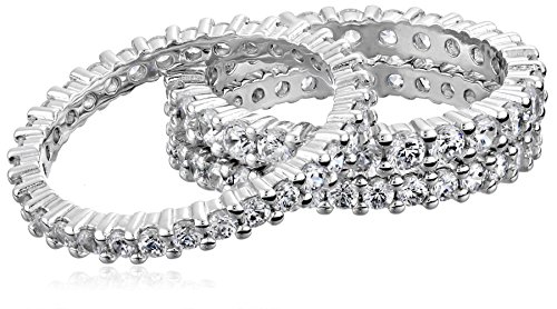 Stacked rings are considered one of the freshest trends of the season. Showcase this with their Sterling Silver Cubic Zirconia Stacking Eternity Band Rings. Every of the 3 sterling silver rings holds a band of clear cubic zirconia stones. The round-shaped stones sit down in a shared-prong setting to create a brand new and finished look. Wear one, two, or all three without delay to accent your hand with a few glamorous bling.
