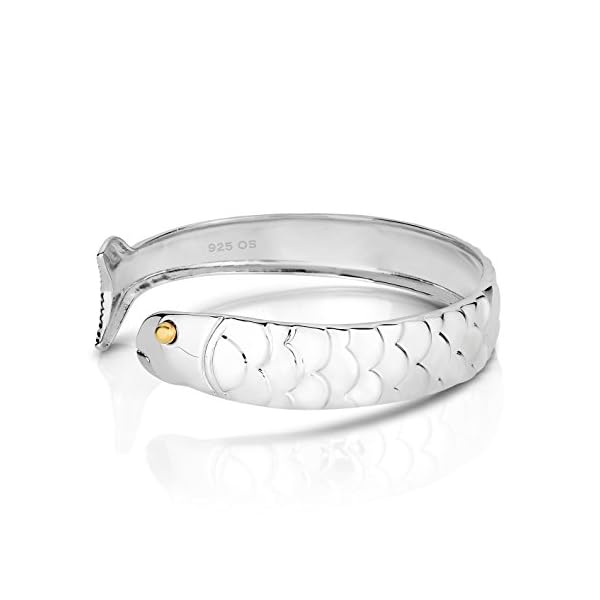 Unique Royal Jewelry. Solid 925 Sterling Silver and 14k Gold Plated Cod Fish Cuff Bracelet