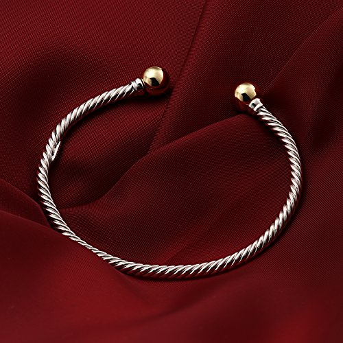 Unique Royal Jewelry Ocean Side Bracelets Solid 925 Twisted Sterling Silver and 14k Solid Gold 2-Ball Cuff Bracelet