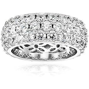 Amazon Collection Platinum or Gold Plated 3-Row Round-Cut Pave Band Ring set with Infinite Elements Zirconia