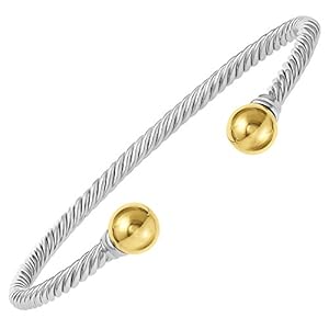 Unique Royal Jewelry Ocean Side Bracelets Solid 925 Twisted Sterling Silver and 14k Solid Gold 2-Ball Cuff Bracelet