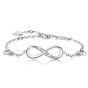 Billie Bijoux Womens 925 Sterling Silver Infinity Endless Love Symbol Charm Adjustable Bracelet for Women Girls